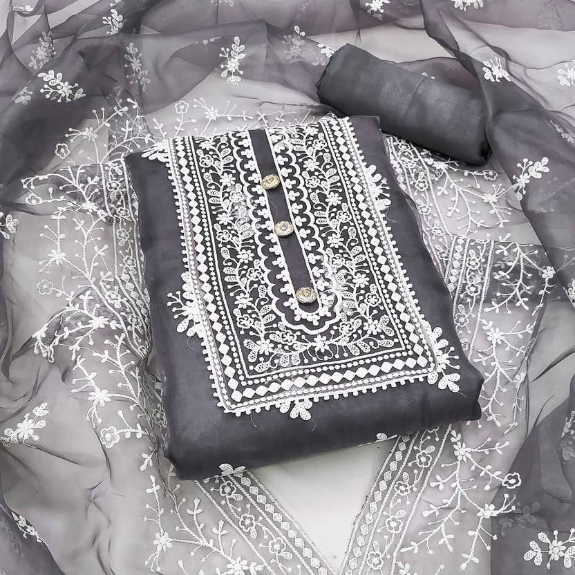 Semi Stitched Organza Salwar Suit Material Embroidered