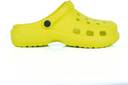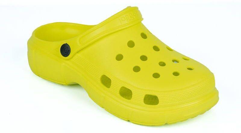 This is a vibrant red slide sandal, crafted from a single piece of lightweight and waterproof material, likely EVA. The upper features multiple perforations for enhanced breathability, while the footbed is textured to provide comfort and prevent slipping. A movable back strap allows for a secure fit, converting it into a clog-like style. The thick, grooved sole offers good traction, making it suitable for various surfaces. This versatile sandal is ideal for casual wear, beach outings, or gardening. It can be paired effortlessly with shorts, t-shirts, swimwear, casual dresses, and loungewear.