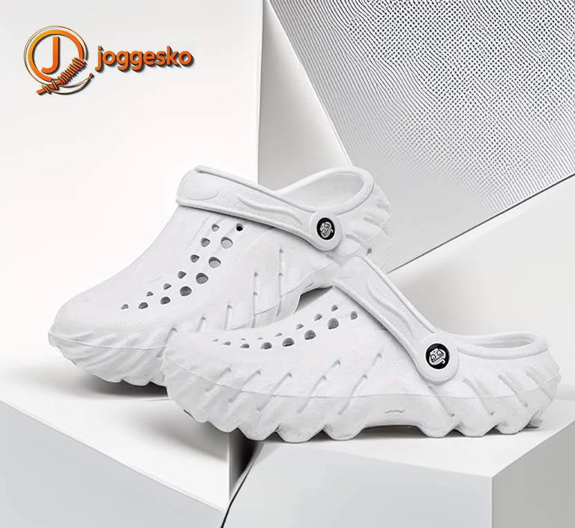 Joggesko offers men's EVA clogs that are lightweight, durable, and water-resistant. Made from Ethylene Vinyl Acetate (EVA), these clogs provide comfort and flexibility, making them ideal for various activities. They typically feature a slip-on design with ventilation holes for breathability, and a backstrap that can be flipped up for a slip-on style or down for a more secure fit. Designed for all-day comfort, the EVA material offers cushioning and support with a contoured footbed for better arch support. Suitable for casual outings, beach trips, gardening, or indoor use, their water-resistant nature ensures easy cleaning and maintenance. Available in a range of colors and patterns.