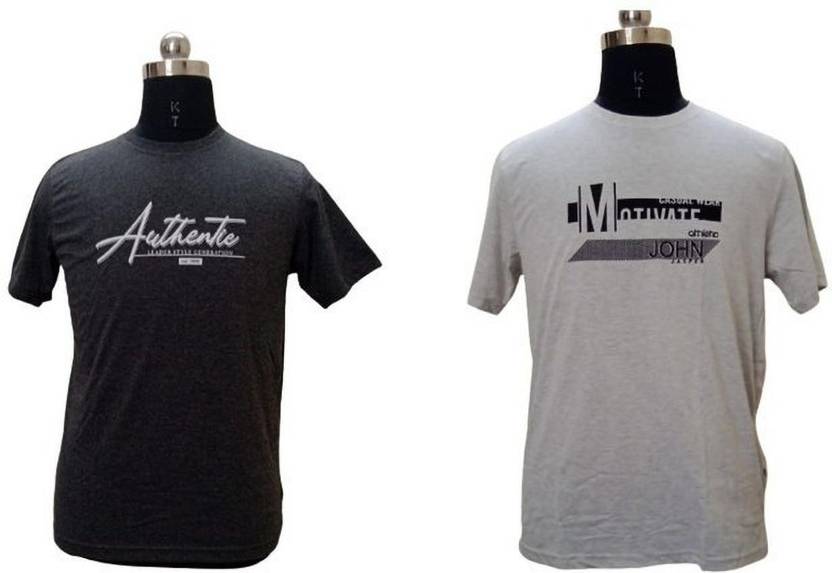 Pack of 2 Men Self Design Round Neck Cotton Blend Grey T-Shirt
