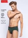 This John Players solid brief in olive green is expertly crafted from a blend of 93% micro modal and 7% spandex fabric. Designed for a perfect fit, this brief features a jacquard outer elastic band and a woven label at the center. The double-layered contoured crotch provides enhanced support, while the super-soft elastic ensures a snug yet comfortable fit throughout the day. It is ideal for those seeking style and comfort in their everyday essentials.