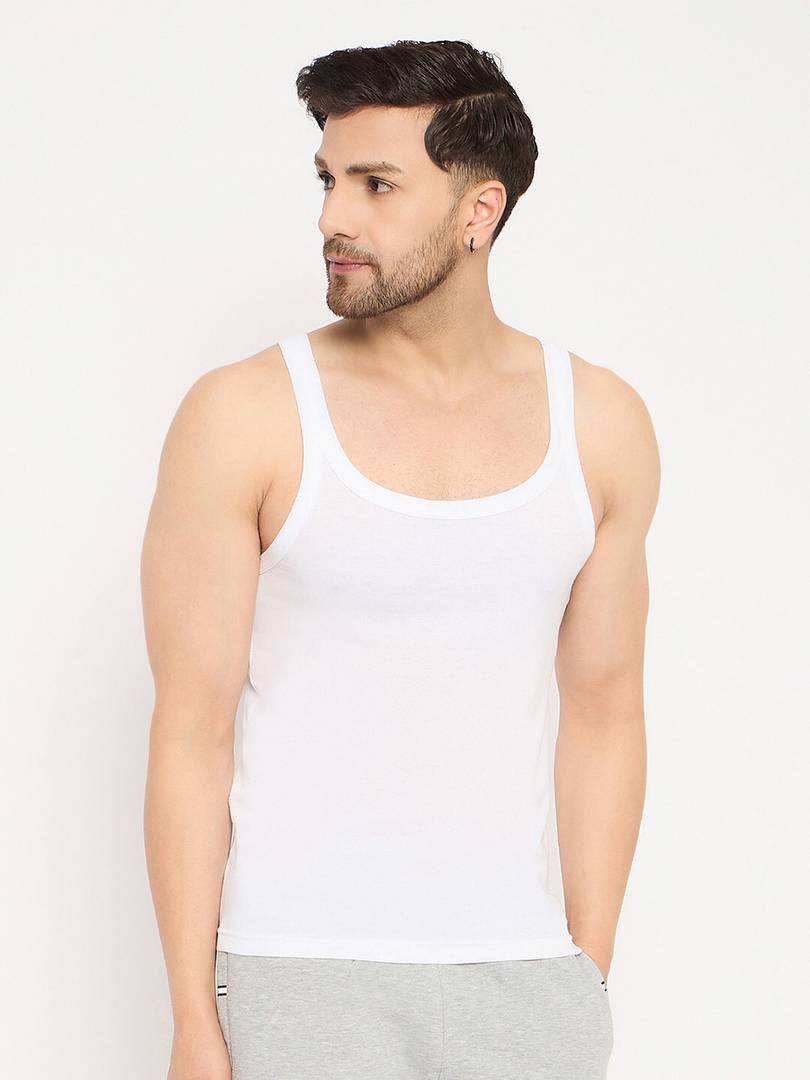White Cotton Comfort Fit Men Vest