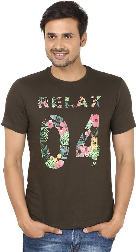 John Players Men Printed Round Neck Cotton Blend Green T-Shirt