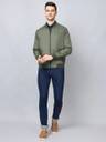 Features- Color- Olive, Pattern-Solid, Fit- Slim, Type- Casual jacket with zip detail, Length- Medium, Season- Winter, Fabric detail- 260 GSM, Fabric type- Polyester, Pocket- 2 Pockets, Closure- Zip closure, Sleeves- Full Length, Lining- Polyester, Outer shell- Polyester, Occasion- Casual, Reversible- No, Size- Chest- M- 40 inch, L- 42 inch, XL- 44 inch, XXL- 46 inch.