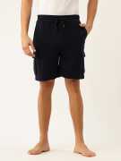 This navy coloured lounge shorts are made from breathable 100% cotton to keep you comfy throughout the day. They feature an elasticated waistband with a drawstring for a customised fit. Designed with two patch pockets below and two regular side pockets above for added convenience.