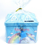 Johnnie Boy unicorn Cute Coin Box Piggy Bank Money Boxes With Lock And Key Creative Cartoon Tinplate Piggy Bank for kids Coin Bank (Blue, Pink)