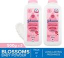 JOHNSON'S Blossoms Baby Powder For Long Lasting Freshness & Skin Comfort Pack Of 2 (2 x 500 g)