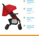 | Other Features | - Lightweight aluminium chassis is easy to manouvre on the street, in the park or up the stairs, Suitable from birth with flat reclining seat, Pairs perfectly with all Joie group 0+ infant seats, no adapters needed, Removable head support, One hand fold automatically locks, leaving your other hand free, Free standing when folded and fits nicely in a small boot, One-hand smooth recline system keeps a sleeping baby tilted and dreaming, Multi-position, flat reclining seat provides backrest recline options, Multi-position calf rest has two comfy options, Reversible handle lets baby look both ways whether facing in or out, UPF 50+ sun canopy, Oversized, expandable hood provides custom shade options, Large, easy access storage basket holds plenty of personal items, Front swivel wheels lock in place as needed, All wheel suspension for a smoother ride on rough surfaces, Padded armbar rotates to the side for easy entry, Single step, ShoeSaver brake keeps shoes scuff free, SoftTouch 5-point harness system is gentle on baby's skin and adjusts to 3 heights