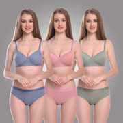 Woman's bra-panty set Full-coverage lingeri set Regular Bra .This cotton bra is provided with a fine mesh at the inner bust edge, and this improves air flow thereby providing you a lot of comfort and hides bulges, bumps and rolls thus making you look tight slim fit and trim. We provide good quality of bra and panty with heavy material and different types of colors Women and Girls Lingerie Sets.