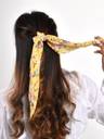 Wear your hair up with this classic scarf style hair scrunchy. Perfect for putting your hair up in a ponytail, around your wrist, and more. Don it with quirky casual for a fresh and fun look.