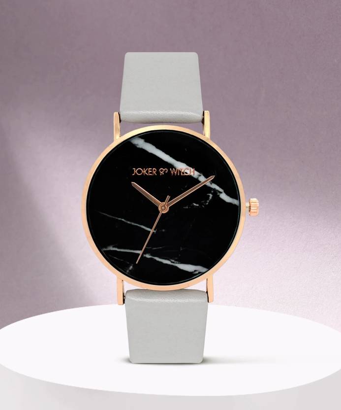 Joker & Witch Hannah 36mm Strap Black Dial Grey Faux Leather Watch for Women
