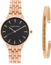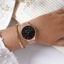 Make a fashion statement that's both daring and delightful with this Juniper Rose Gold Watch Bracelet Stack! The stunning metallic interplay is sure to turn heads, while the minimalist black watch dial and sleek mantra band add a touch of modern elegance. Plus, the stack's robust construction ensures you'll be comfortable all day long, whether you're dressed to impress or just running errands.