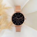 A tribute to the starry nights, this timepiece is chic combining elegance with an air of style. This timepiece features a 32 mm black dial minimal details and a sleek rose gold magnetic strap that fits every wrist. Easy to wear and stylish, this watch is a surely a conversation starter.