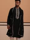 Men Embroidered Silk Blend Straight Kurta With Attached Dupatta (Black)