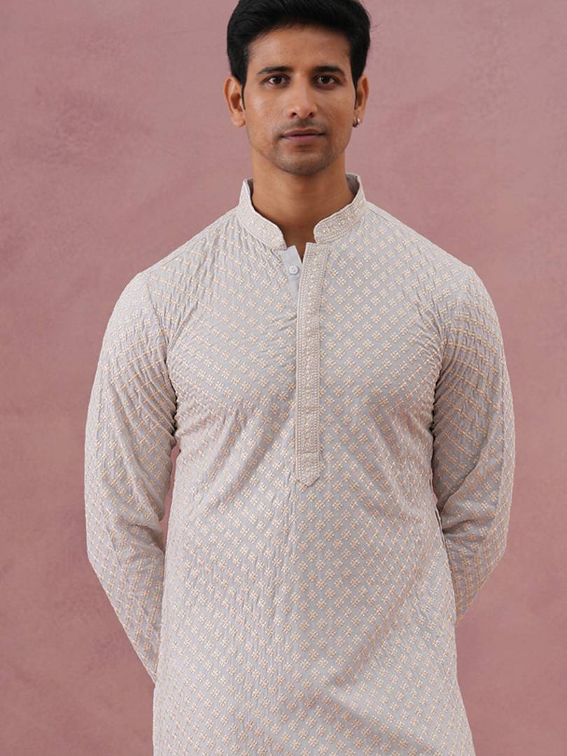 This viscose rayon kurta features an all-over embroidered pattern that adds subtle elegance and texture. Crafted from a soft and breathable fabric, it ensures all-day comfort while delivering a refined ethnic look perfect for festive and traditional occasions.