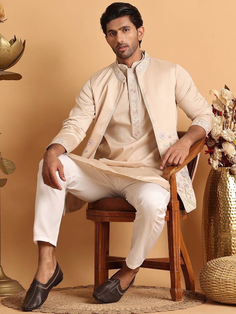 Peach Embroidered Silk Blend Kurtas are a great option for a quick and easy look for the Indian Wedding season. These Silk Blend pieces are perfect for wearing With pajamas, or for the family's after party.