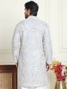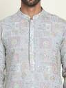 Men Embroidered Silk Blend Straight Kurta (Blue)