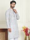 Blue Embroidered Silk Blend Kurtas are a great option for a quick and easy look for the Indian Wedding season. These Silk Blend pieces are perfect for wearing With pajamas, or for the family's after party.