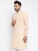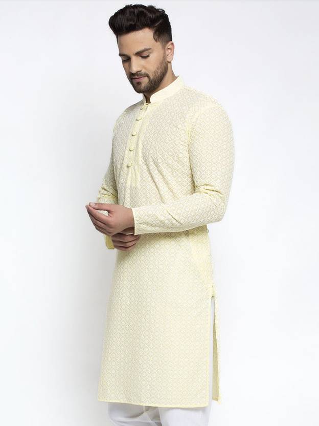 Jompers Men Embroidered Straight Kurta (Yellow)