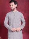Jompers Men Embroidered Straight Kurta (Grey, White)