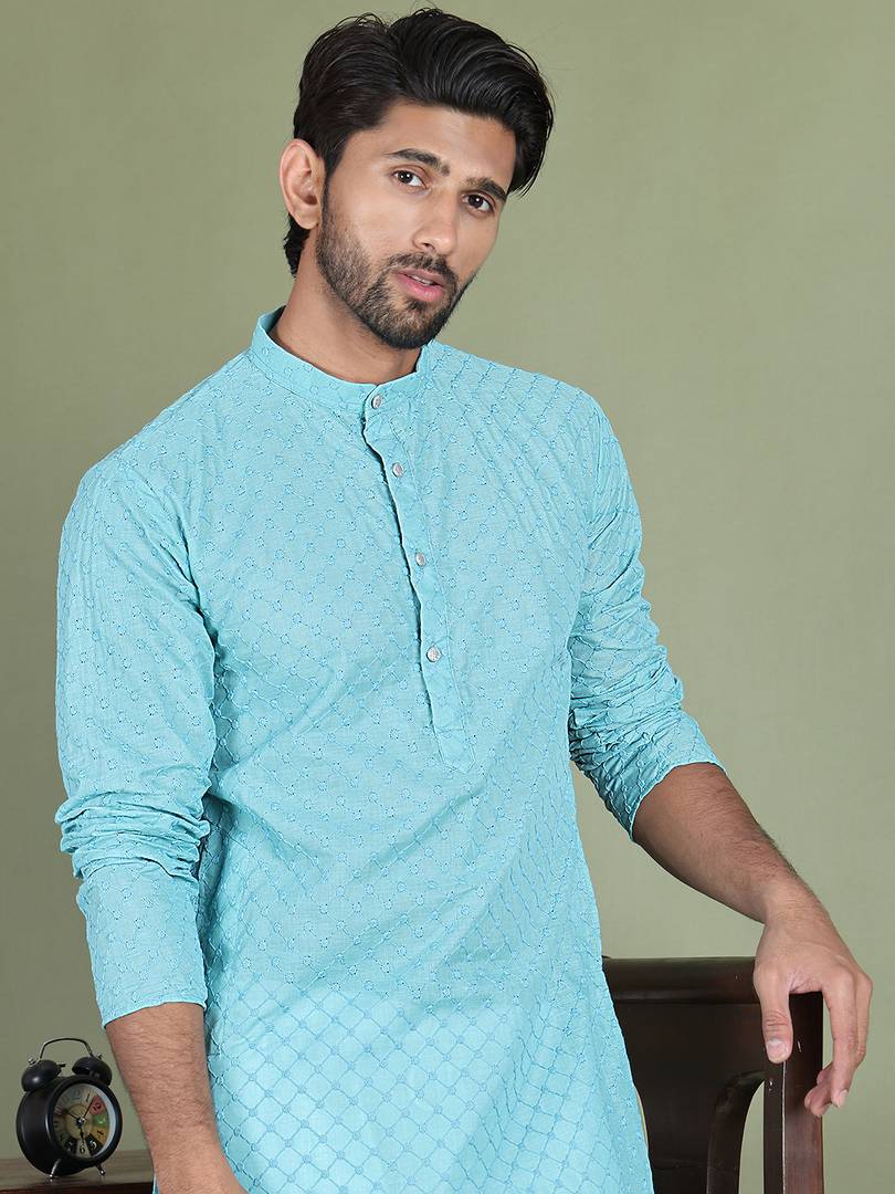 The Embroidered Cotton Kurta Pyjama Sets are a great option for a quick and easy look for the Indian Wedding season. These cotton pieces are perfect for wearing as pajamas, or for the family's after party.