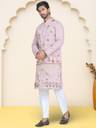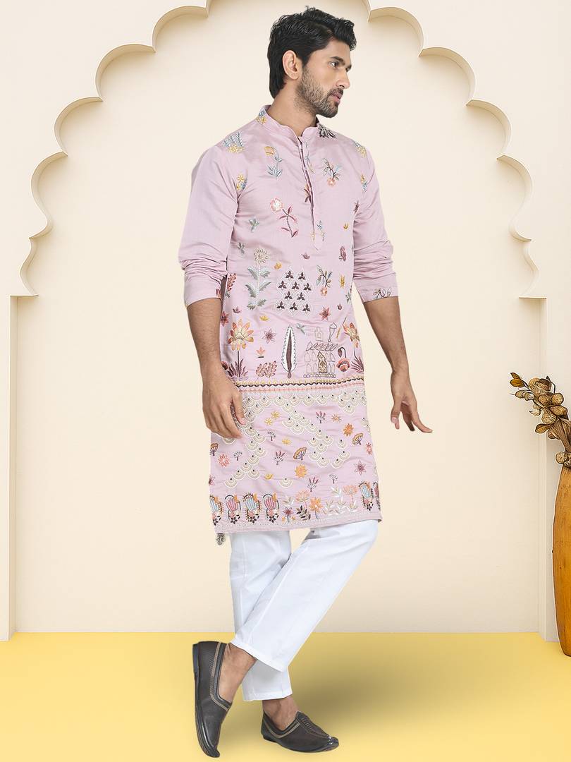 Purple Embroidered Silk Blend Kurta Payjama Sets are a great option for a quick and easy look for the Indian Wedding season. These Silk Blend pieces are perfect for wearing With pajamas, or for the family's after party.