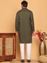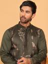Olive Embroidered Silk Blend Kurta Payjama Sets are a great option for a quick and easy look for the Indian Wedding season. These Silk Blend pieces are perfect for wearing With pajamas, or for the family's after party.