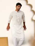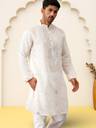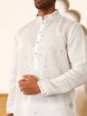 White Embroidered Mandarin collar Long, Regular sleeves Straight shape with regular style Thread work detail Knee length with straight hem Machine weave regular silk Blend