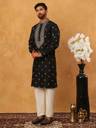 This Silk Blend Foil Printed Kurta Pyjama Set is designed to give a rich and elegant ethnic look. Made from premium silk blend fabric, it offers a soft feel with a comfortable fit. The foil print adds a festive touch, making it ideal for weddings, festivals, and special occasions.