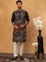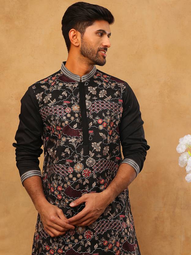 This silk blend kurta pyjama set features detailed all-over work and a classic mandarin collar for a refined traditional look. Designed with a straight silhouette and comfortable fit, it is an excellent choice for festive wear, wedding functions, and cultural events.