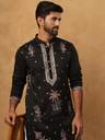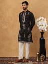 This silk blend embroidered kurta pyjama set offers an elegant and graceful ethnic look. Designed with fine embroidery and a comfortable fit, it is perfect for festive and traditional occasions.