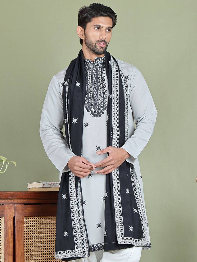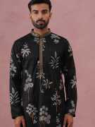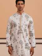 Crafted from a soft cotton-blend fabric, this white kurta pyjama features detailed multicolour botanical embroidery for a fresh and elegant festive look. Lightweight, breathable, and stylish, it’s perfect for daytime celebrations and traditional occasions.