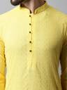 Lemon Yellow Embroidered kurta with churidar. Lemon Yellow straight knee length kurta, has a mandarin collar, long sleeves, straight hem, side slits. White Solid churidar, has drawstring waistband,