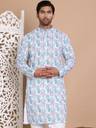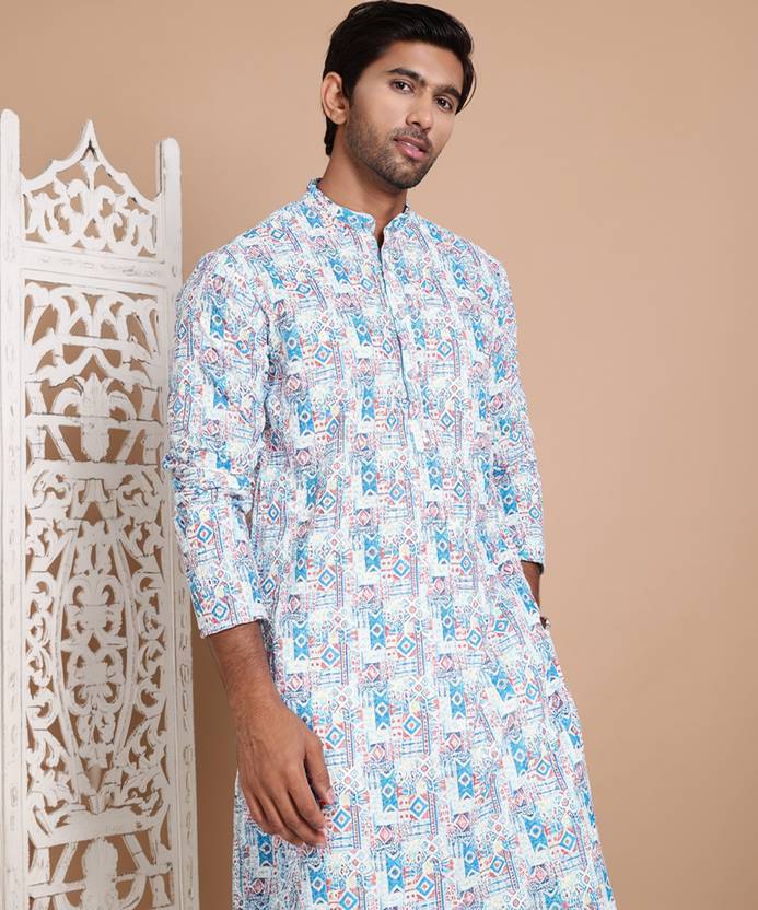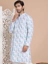 Men Printed Pure Cotton Straight Kurta (Blue)