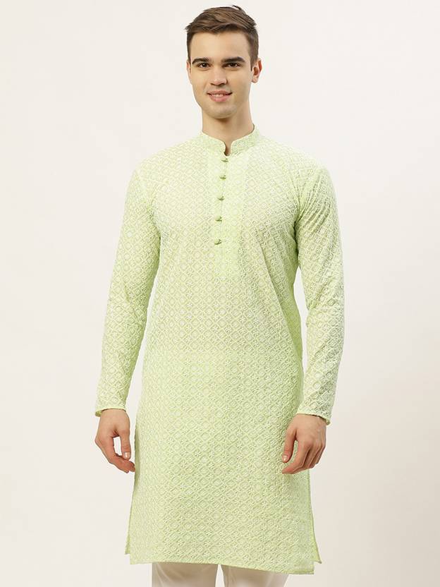 Jompers Men Printed Straight Kurta (Green)