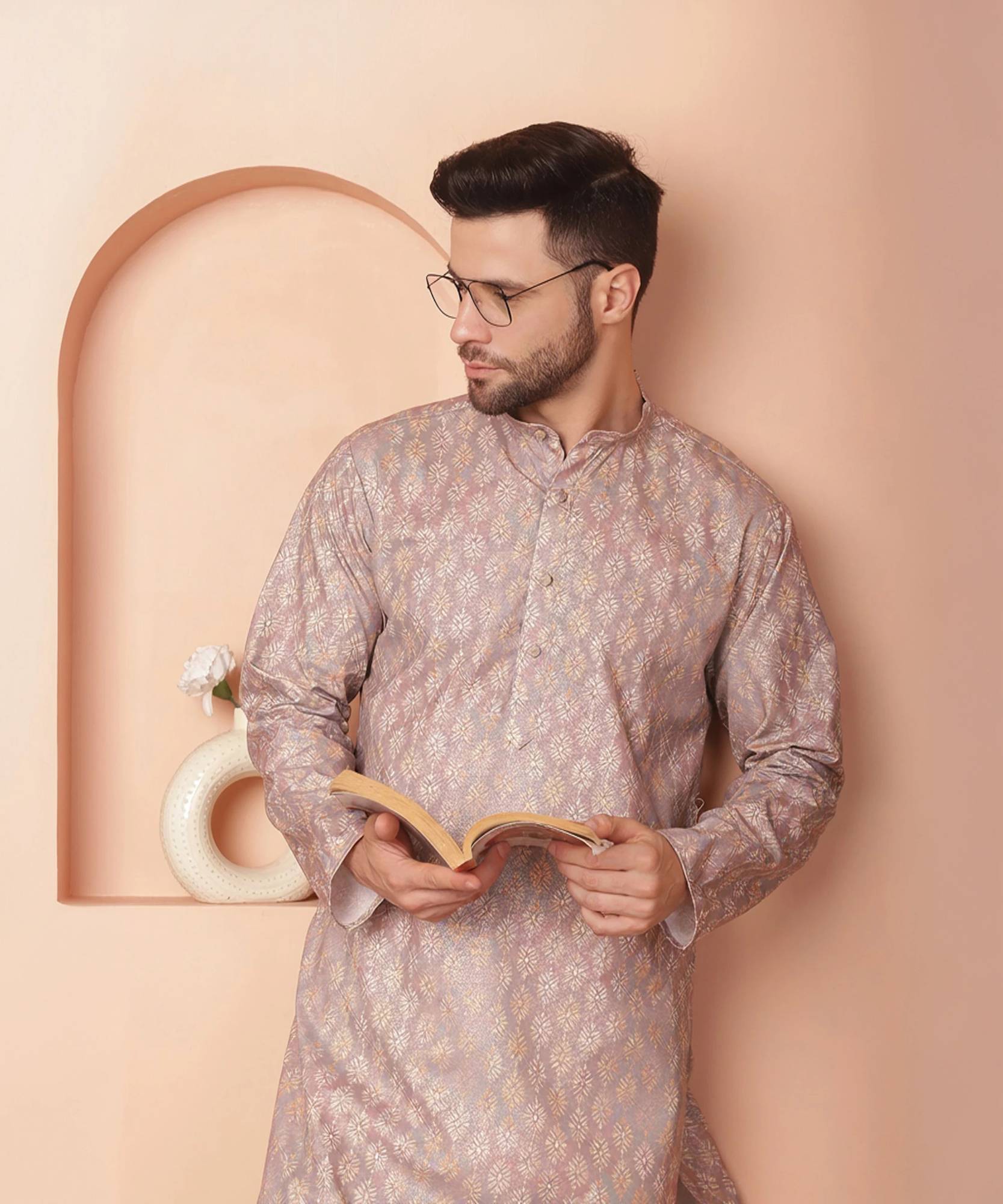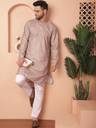 Men Printed Pure Cotton Straight Kurta (Orange)