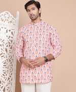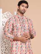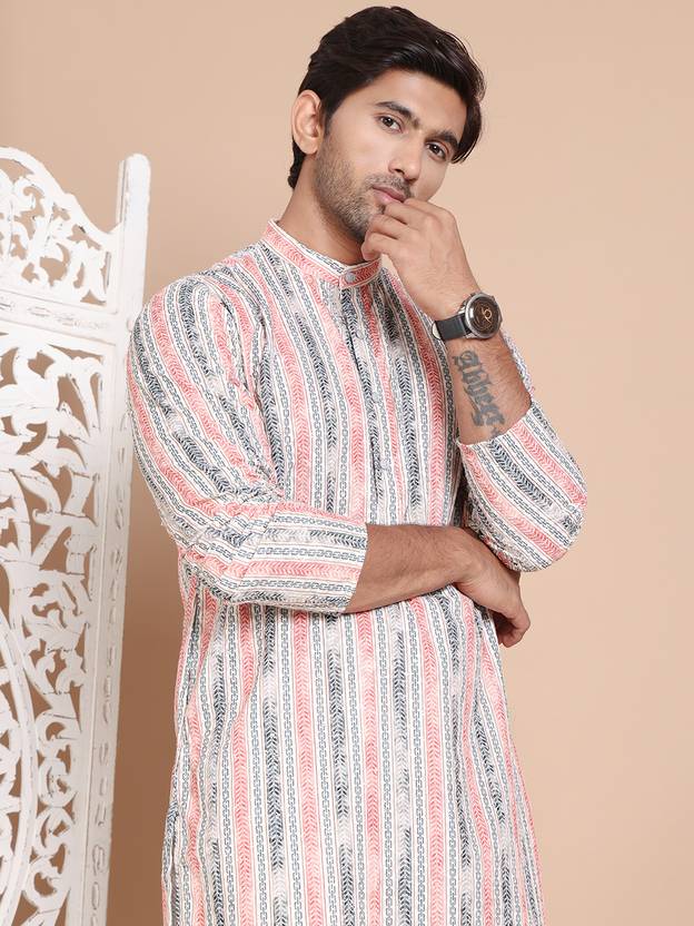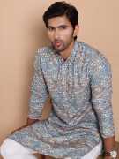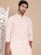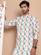Men Printed Pure Cotton Straight Kurta (Beige)