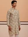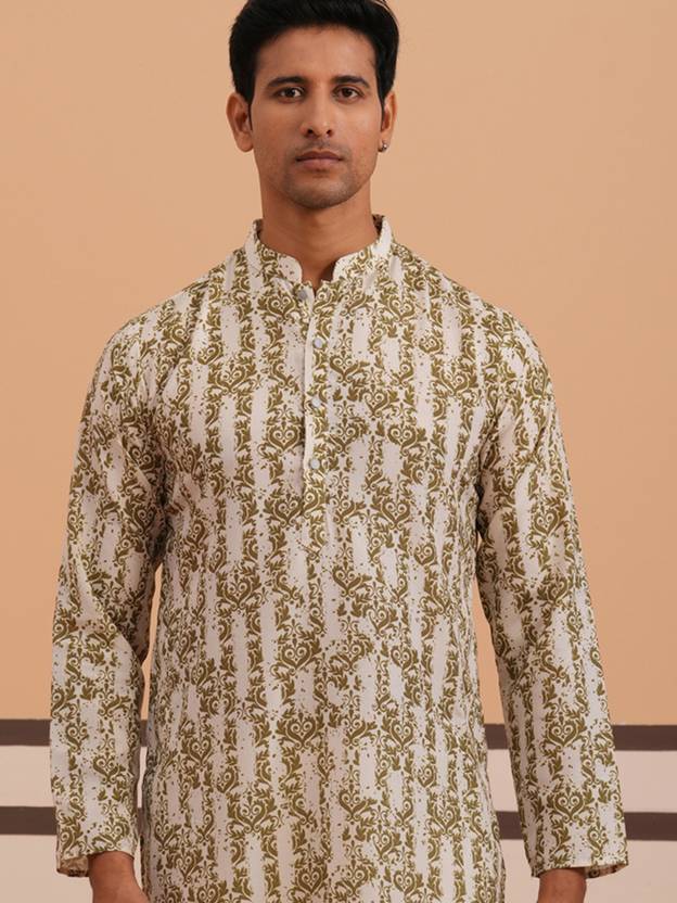 Jompers Men Printed Straight Kurta (Green, White)