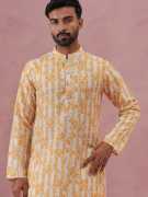 A stylish yellow printed kurta designed with an elegant ornamental pattern on a soft, breathable fabric. Perfect for festive occasions, pujas, and family gatherings.