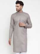 Men Solid Cotton Blend Straight KurtaΒ (Brown)