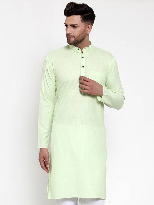 Jompers Men Solid Pure Cotton Straight Kurta  (Green)