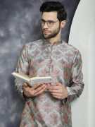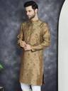 Jompers Men Woven Design Straight Kurta (Gold)