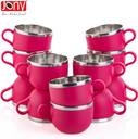 Jony Pack of 12 Plastic, Steel Premium Quality Chai, Tea & Coffee Cup Set - Elegant & Durable for Daily Use (Pink, Cup Set)