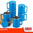 Jony Pack of 6 Plastic, Steel Premium Quality Chai, Tea & Coffee Cup Set - Elegant & Durable for Daily Use (Blue, Cup Set)