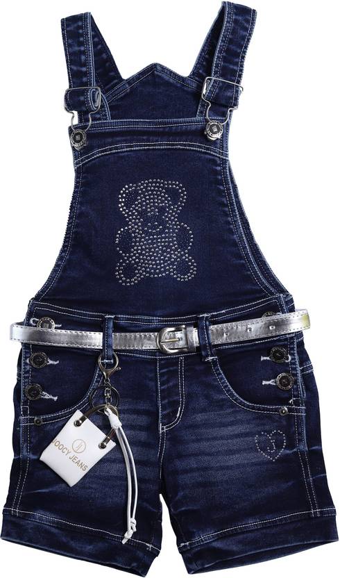 Dungaree For Girls Casual Self Design Cotton Blend (Dark Blue, Pack of 1)