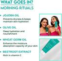 Start your day with our Morning Ritual Moisturizer, a lightweight and fast-absorbing daily Cream designed to protect and rejuvenate your skin. Enriched with Daymoist CLR, it ensures lasting moisture retention and skin barrier support, enhancing your skin’s resilience. infused with Jojoba Oil, Olive Oil, and Wheat Germ Oil, the formula delivers deep hydration and essential nutrients. Complemented by Vitamin E for antioxidant protection, it also features sun protection to shield against daily UV exposure.