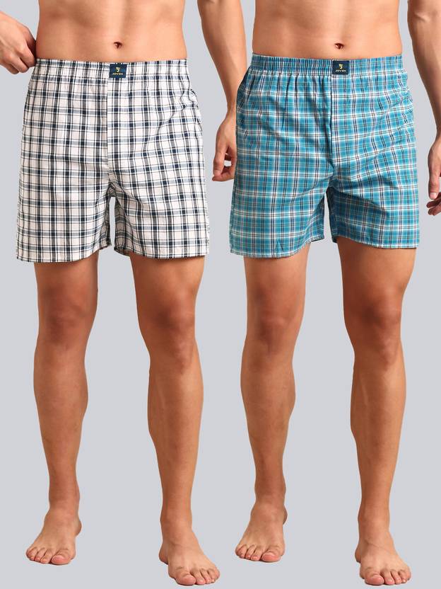 The JOVEN Men Checked Pure Cotton Boxers (Pack of 2) combine comfort and style in one versatile package. Crafted from 100% pure cotton, these boxers are soft, breathable, and gentle on the skin, providing all-day comfort. The classic checked pattern adds a touch of sophistication to your everyday essentials. Featuring an elastic waistband for a snug yet comfortable fit, these boxers offer flexibility and ease of movement.
