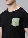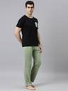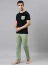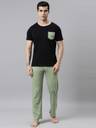 JOVEN Men Printed, Solid Black, Green Top & Pyjama Set