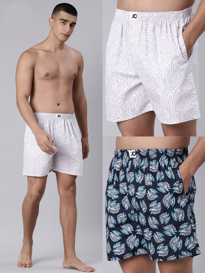The JOVEN Men Printed Side Pocket Boxers (Pack of 2) offer a blend of comfort, style, and practicality, making them an essential addition to any man's wardrobe. Crafted from 100% pure cotton, these boxers are designed to provide all-day comfort, whether you're lounging at home or on the move. Each pair features side pockets, providing convenient storage for small essentials like keys or a mobile phone.