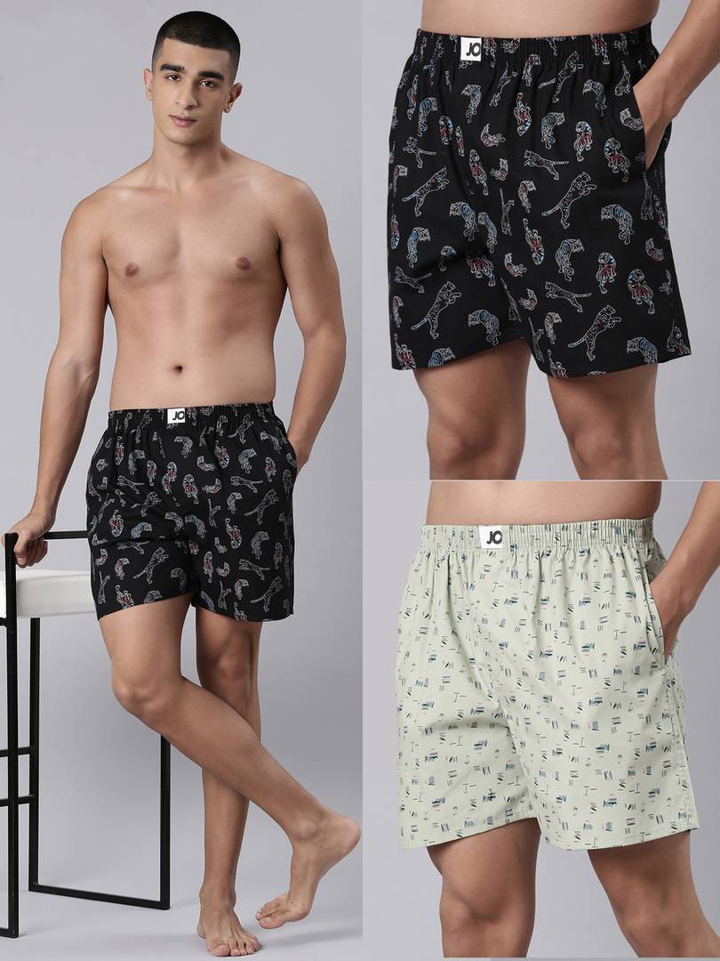 The JOVEN Men Printed Side Pocket Boxers (Pack of 2) offer a blend of comfort, style, and practicality, making them an essential addition to any man's wardrobe. Crafted from 100% pure cotton, these boxers are designed to provide all-day comfort, whether you're lounging at home or on the move. Each pair features side pockets, providing convenient storage for small essentials like keys or a mobile phone.